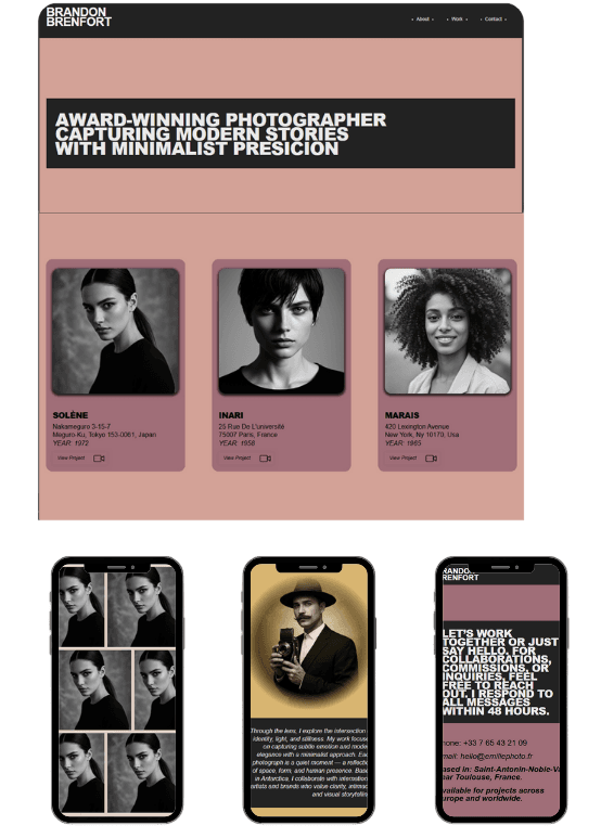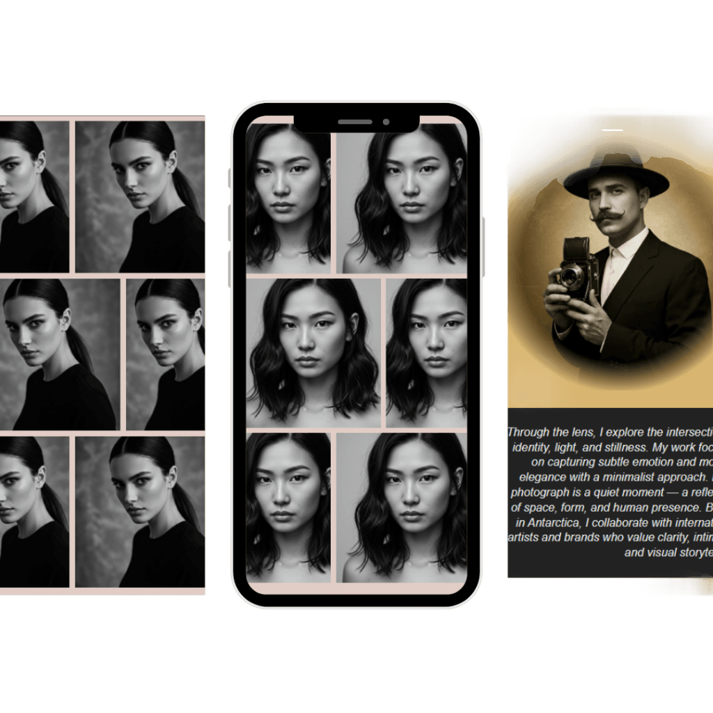 The portfolio’s digital layout acts as its own packaging—crafted with intuitive navigation, responsive design, and elegant typography. Every page is designed to frame the photographer’s work as if it were an exhibition, combining clean UI elements with thoughtful UX flows. The result is a portfolio that doesn’t just display images, but elevates them through design precision and seamless user interaction.
